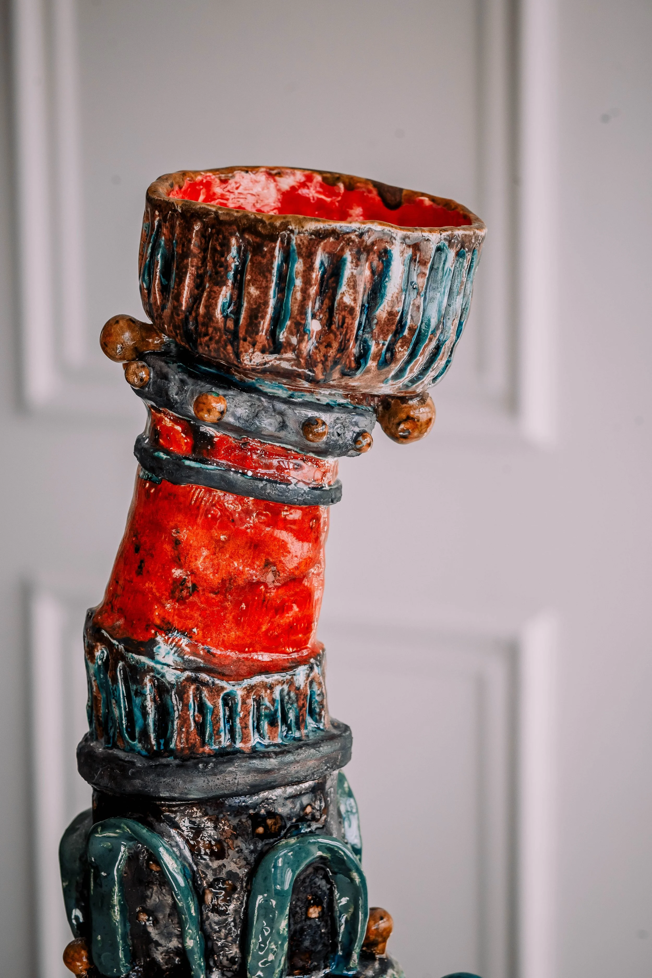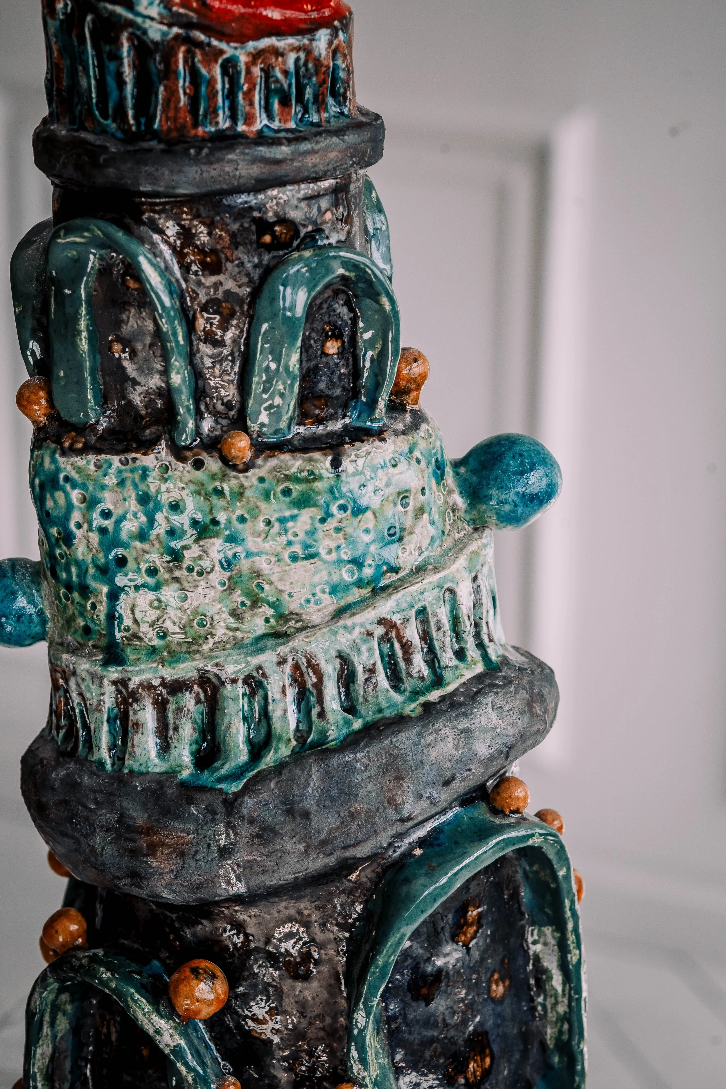 Ceramic 12” x 5” x 15” Red clay, glazes, porcelain, underglazes 2025