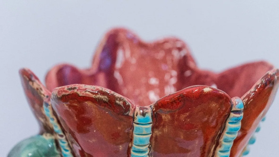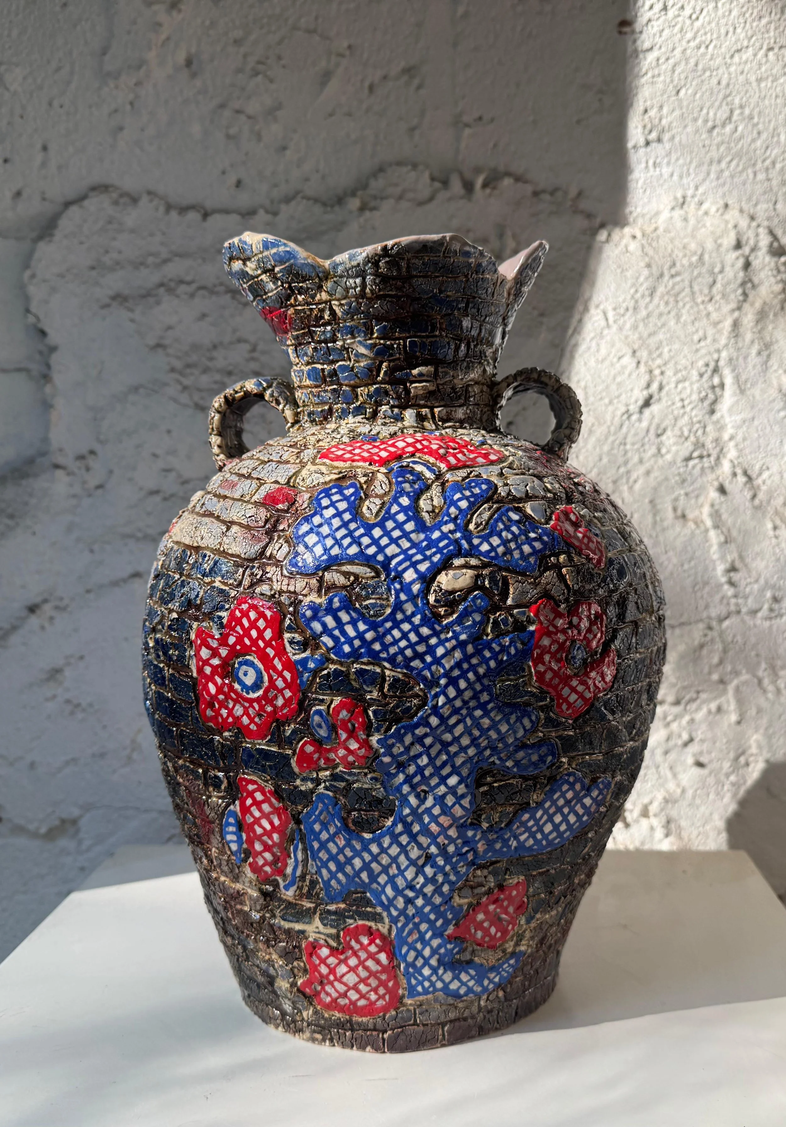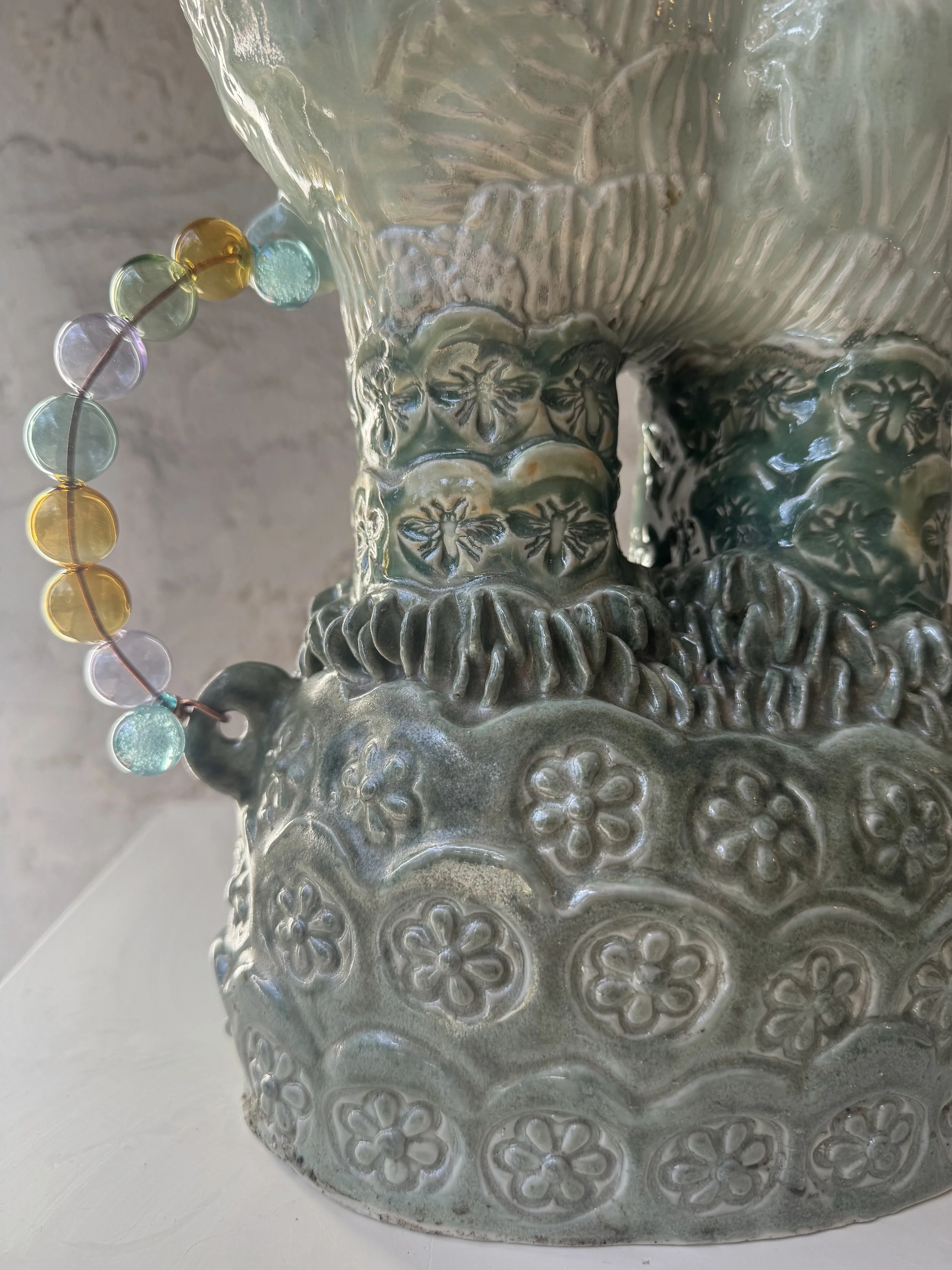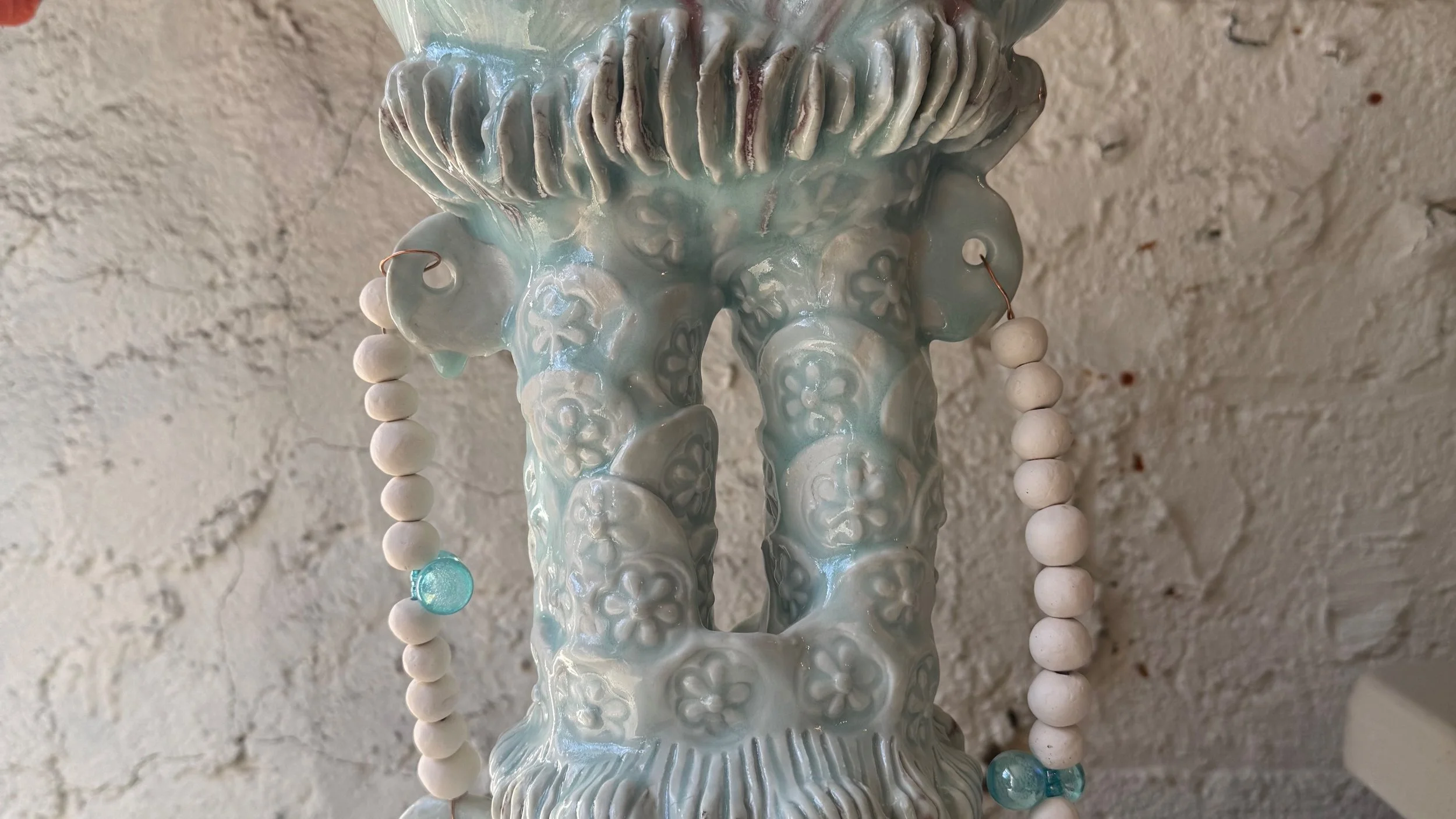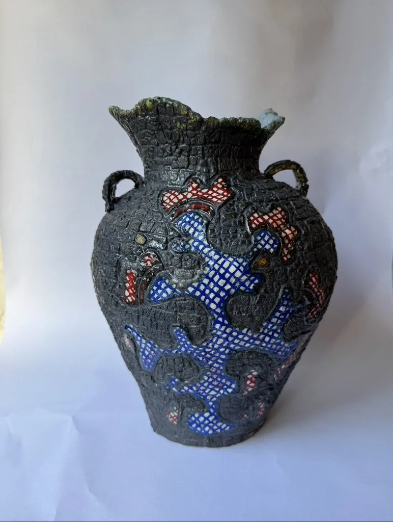 Ceramic 9” x 8” x 13” Red clay, underglaze, glazes, copper oxide 2025