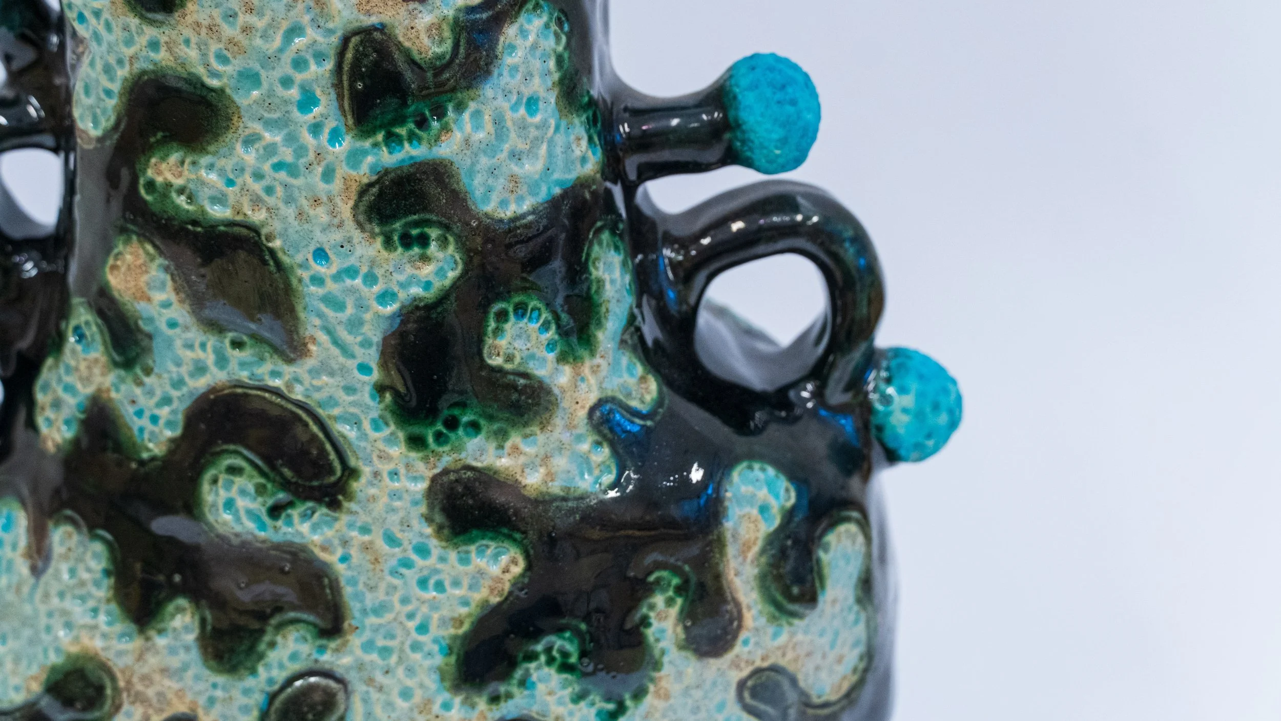 Ceramic, 13x9x9 Red clay, glazes, cooper oxide, underglaze 2025