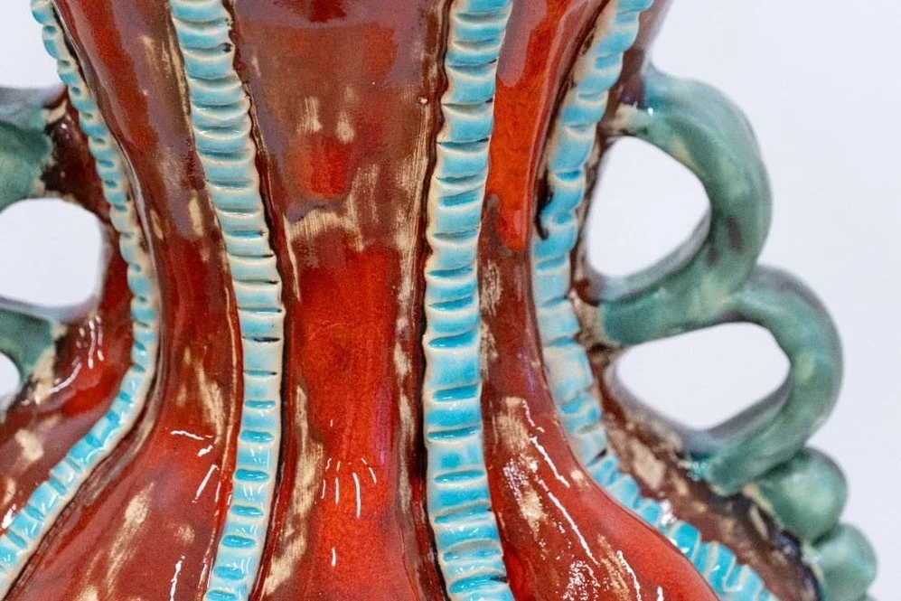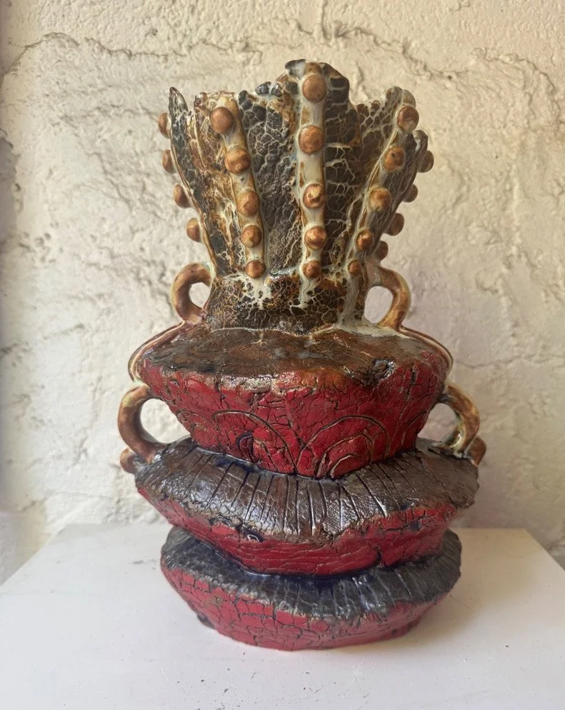 Ceramic 7” x 6” x 11” Red clay, glazes, cooper oxide 2024