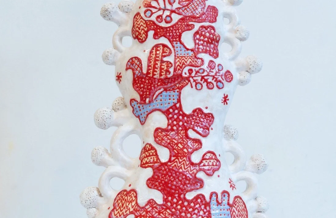 Ceramics 8” x 4” x 11” Red clay, underglaze, glazes 2025